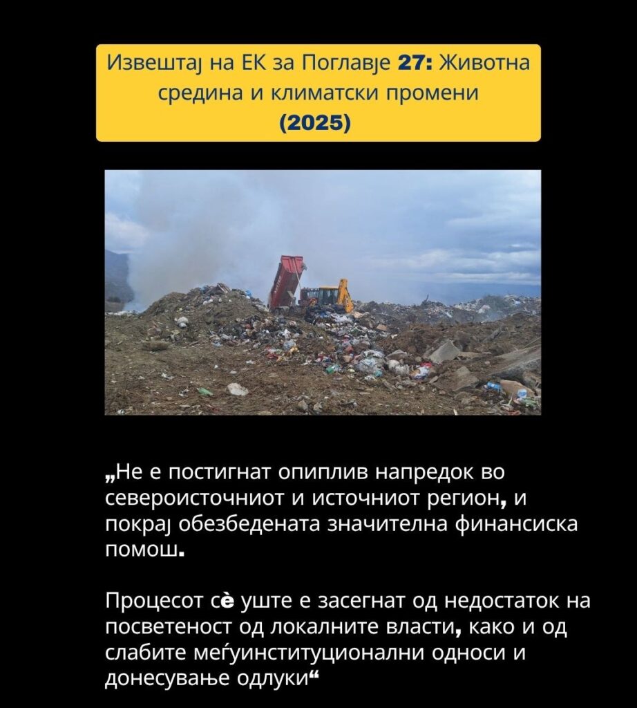 „Очекувавме веќе да се работи на тоа, но бидејќи немаше поволни понудувачи, постапката се одложи. Имаше повеќе диви депонии во Источниот и Североисточниот плански регион, но сите тие веќе се затворени. Во однос на нестандардните депонии, има неколку кои се во фаза на затворање и кои до крајот на годината треба да бидат затворени. Такви се четири или пет. Потоа ќе останат уште неколку кои во текот на наредната година ќе бидат затворени, по прибавување на потребната документација,“ објаснува Василев.